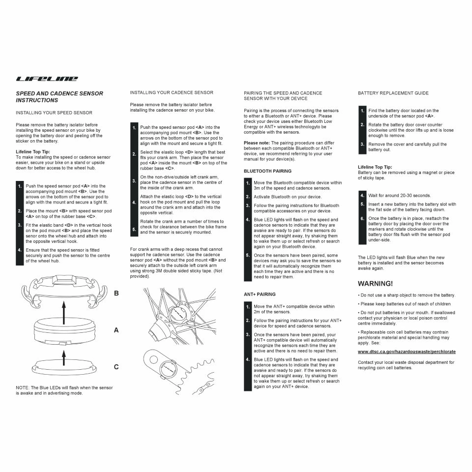 ◌ Les capteurs de vitesse et cadence LifeLine sont compatibles avec Bluetooth 4.0 et ANT+. Gardez une trace de votre vitesse et de vos tr/min et enregistrez avec précision vos performances. L’installation est rapide et facile.
