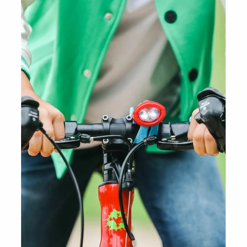 The Hornit MINI Bike Light and Horn is a lightweight, stylish and reliable kids cycle light that features white and green colour light modes and 25 sound effects to keep your little one amused when on two-wheeled adventures.